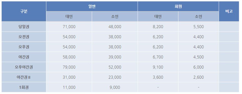 그리고 오후부터 야간까지 이용하실 분들은 오후야간권이 좋고요.