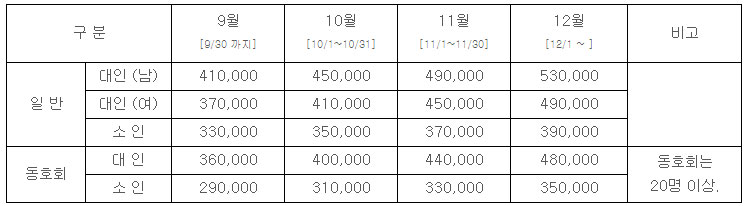 2019년 ~ 2020년 시즌 동안 이용할 수 있는 시즌 락카 이용료는 15만 원이네요.