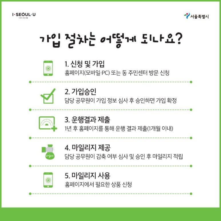 서울시 마일리지 제도는 자율적으로 자동차 운행거리를 줄여 온실가스와 미세먼지 감축에 기여를 하면,