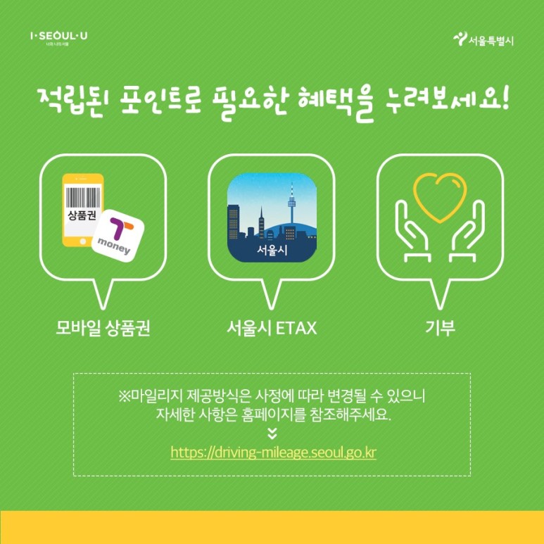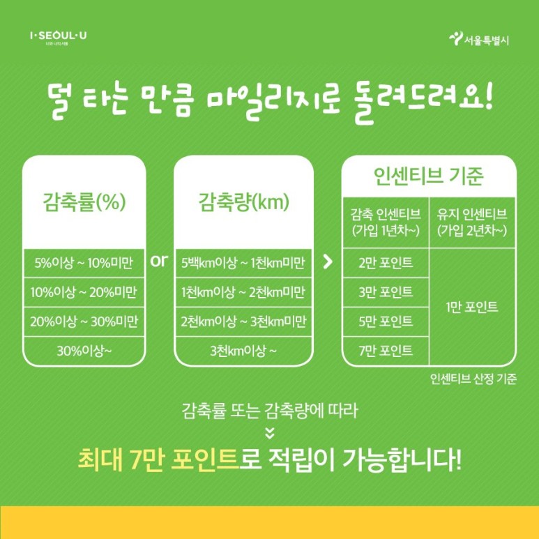 서울시 승용차마일리지(자동차 운행거리를 줄이면 인센티브를 받는 제도입니다.)