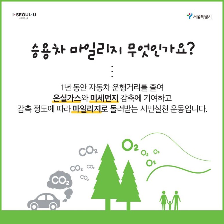 서울시 마일리지 제도는 자율적으로 자동차 운행거리를 줄여 온실가스와 미세먼지 감축에 기여를 하면,